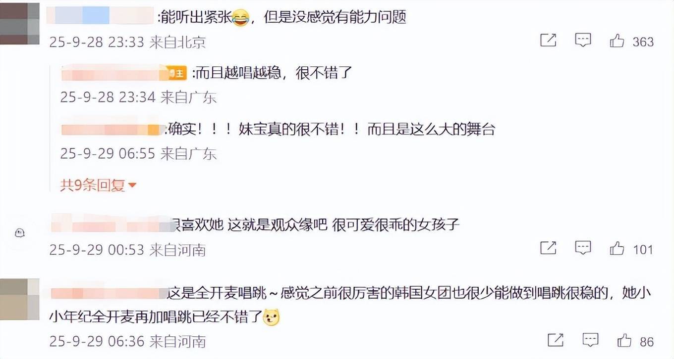 她的声音甜美透亮,而且因为第一次上台就完成得很好,也被很多观众狂赞勇气可嘉。甚至还有人说“真不错,完全碾压部分流量歌手,星二代靠实力出圈了。”