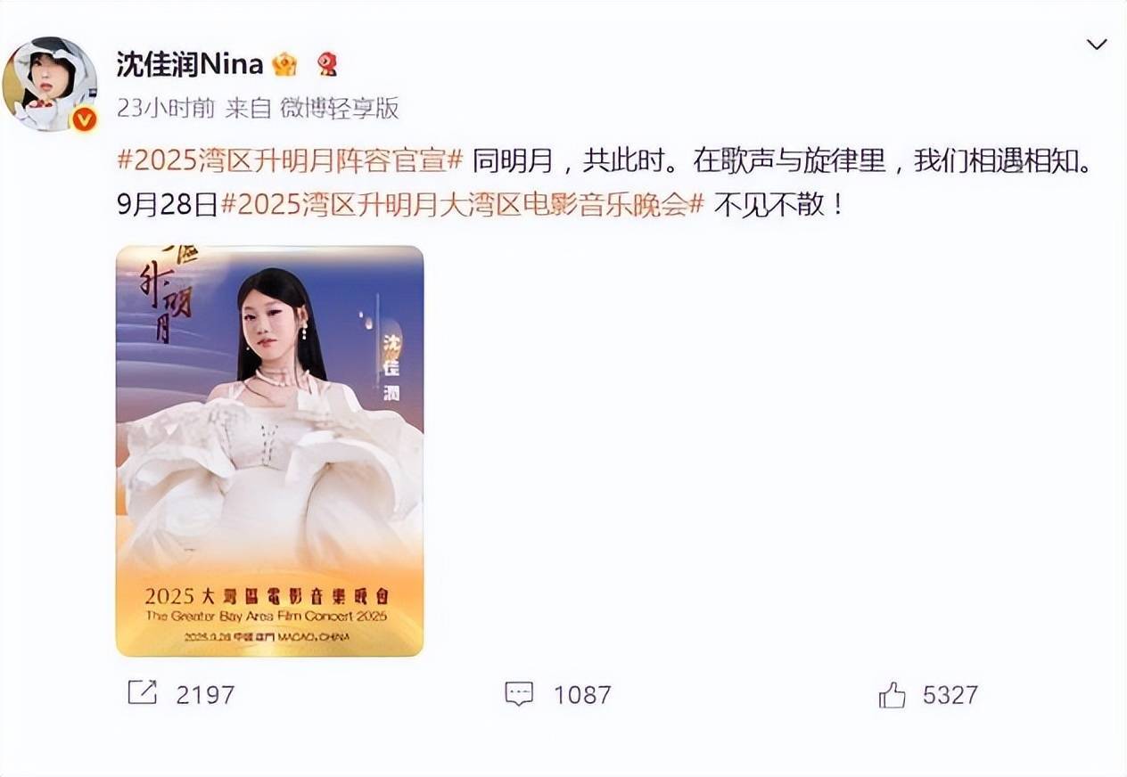 这不,在9月28日大湾区电影音乐会的舞台上,沈佳润也带来了自己歌曲的国内首秀,全程依靠自己的原声完成唱跳舞台。
