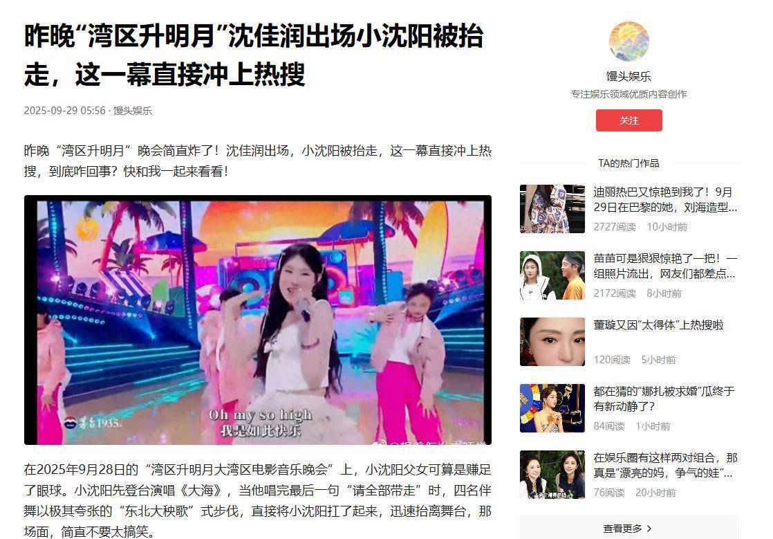 而这是小沈阳的女儿沈佳润的歌曲,随着这首歌的出圈,沈佳润也意外成了互联网最被关注的人物。